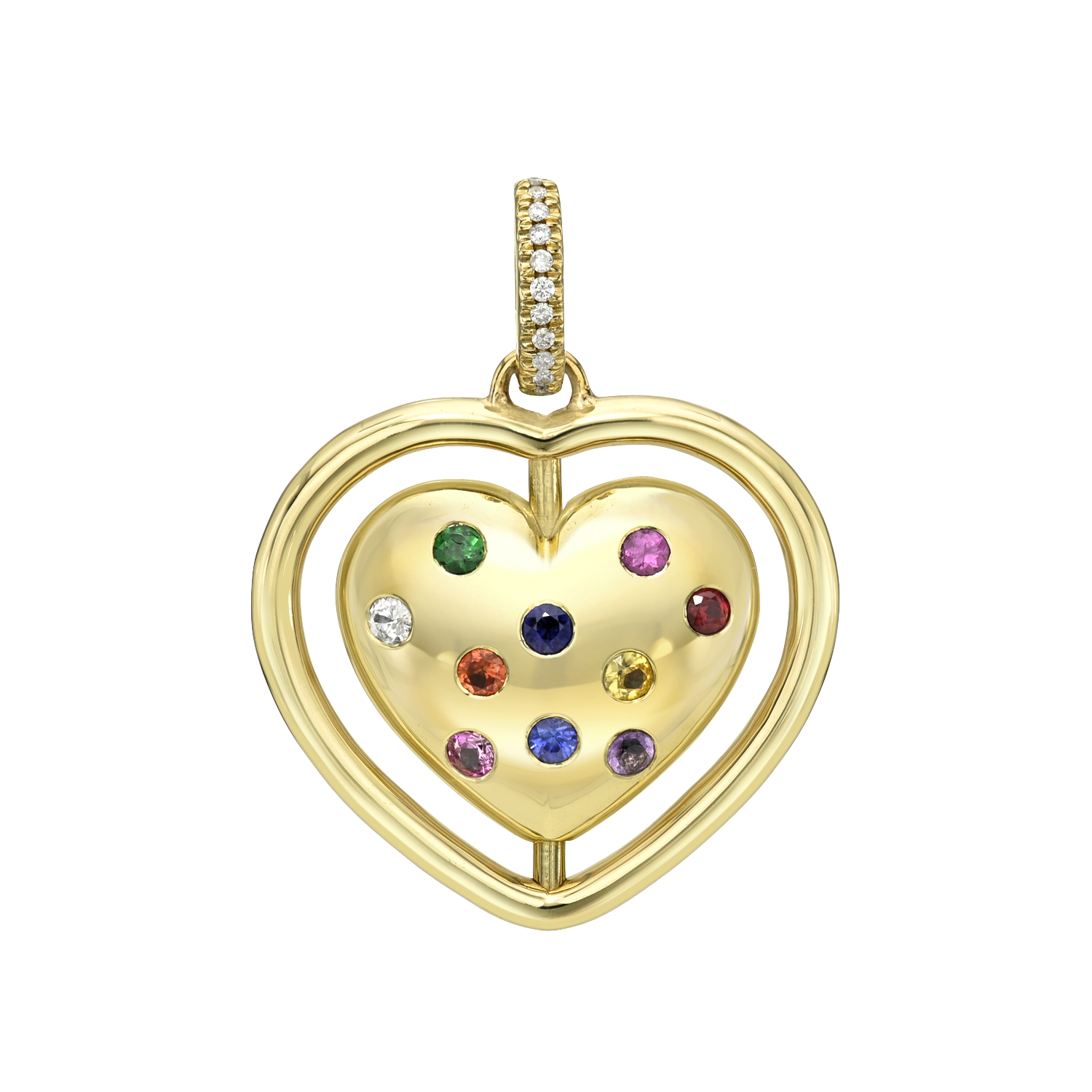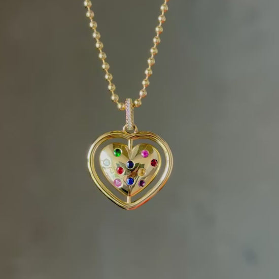 Turn heads with a pendant that does more than dazzle—it moves with you. The Bella Heart handcrafted 14K gold spinning heart charm necklace features 10 genuine sapphires on one side, radiating rich color and light. The flip side? A bold laser-engraved message that reads "Spicy," making it as fierce as it is groovy.