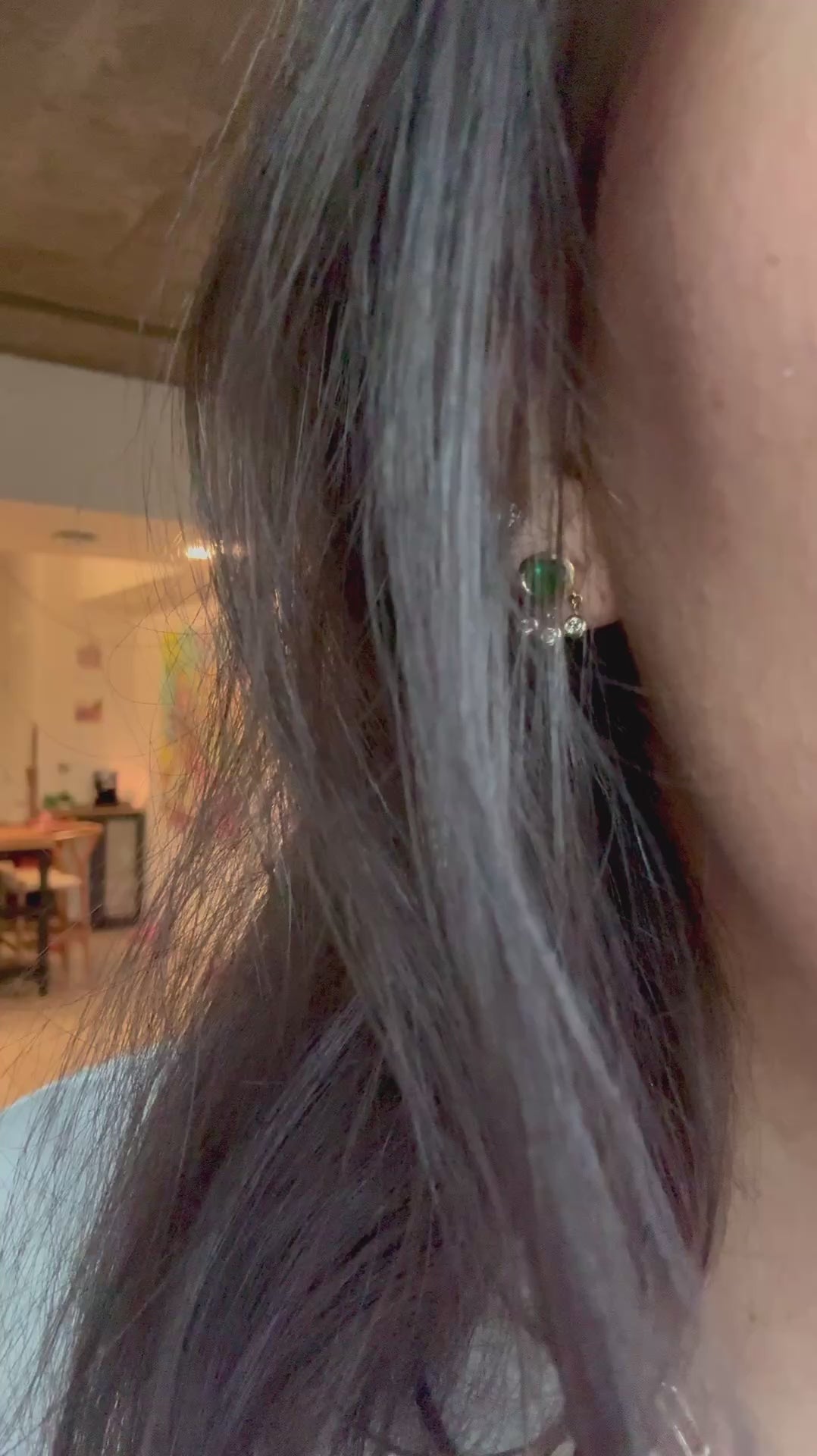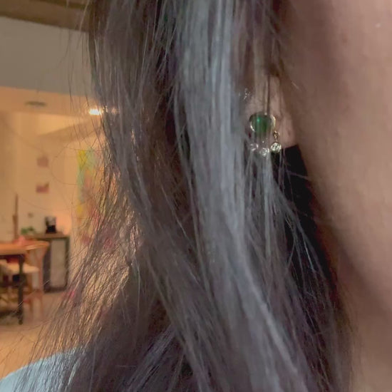 Rich, oval emeralds take center stage in these earrings, exuding a vibrant, captivating color. A cascade of dangling round diamonds adds exquisite brilliance, catching the light with every movement for a stunning, radiant effect.