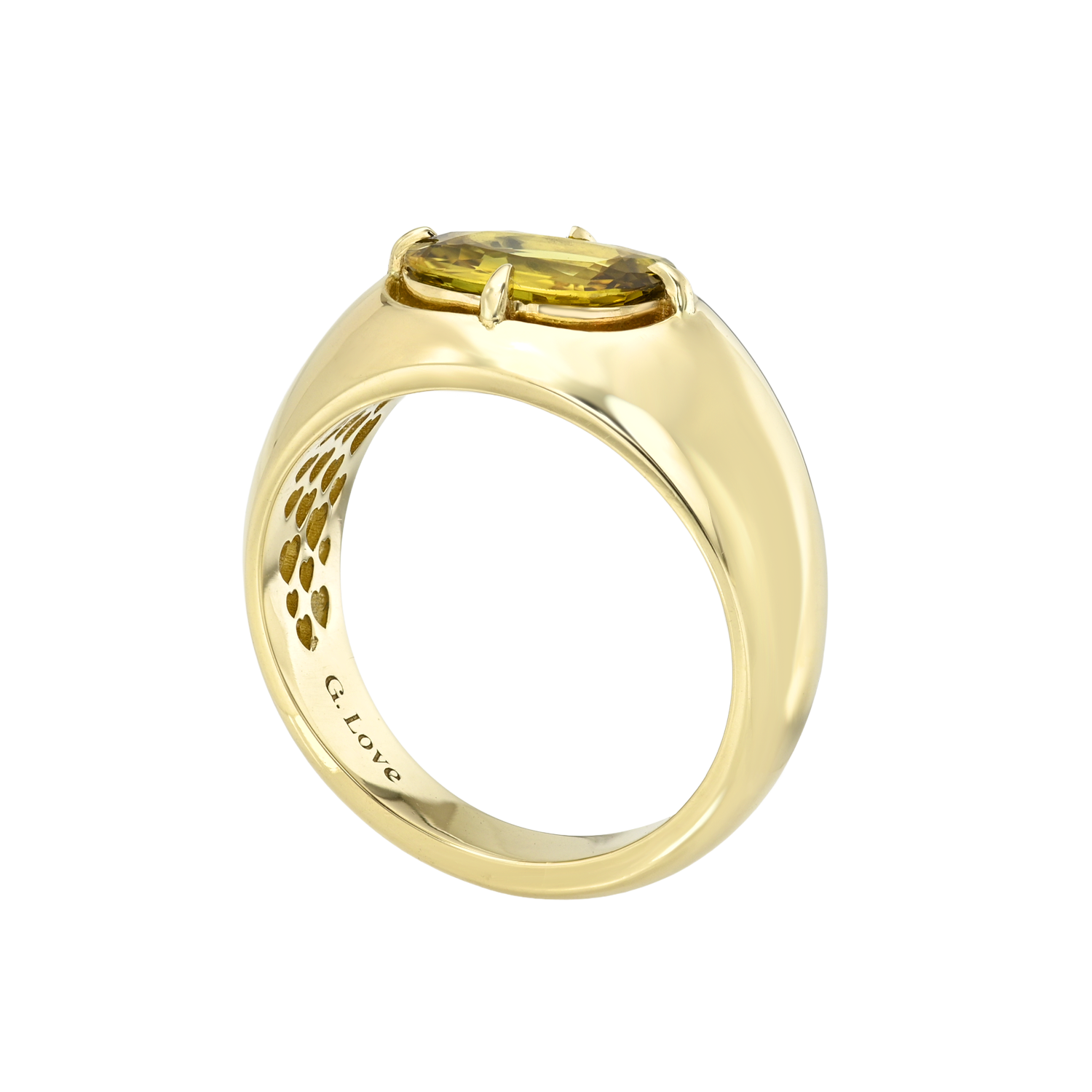 Say hello to your new favorite base for a dream ring. This 14k yellow gold dome setting creates a striking floating illusion for your chosen gemstone, cradled in a sculptural four-prong basket. Peek underneath to find a hidden gallery of sweet heart cutouts, adding a touch of romance just for you. Stone sold separately—make it yours with the diamond or gemstone that tells your story. Send us an email with your stone inquiry for a quote.