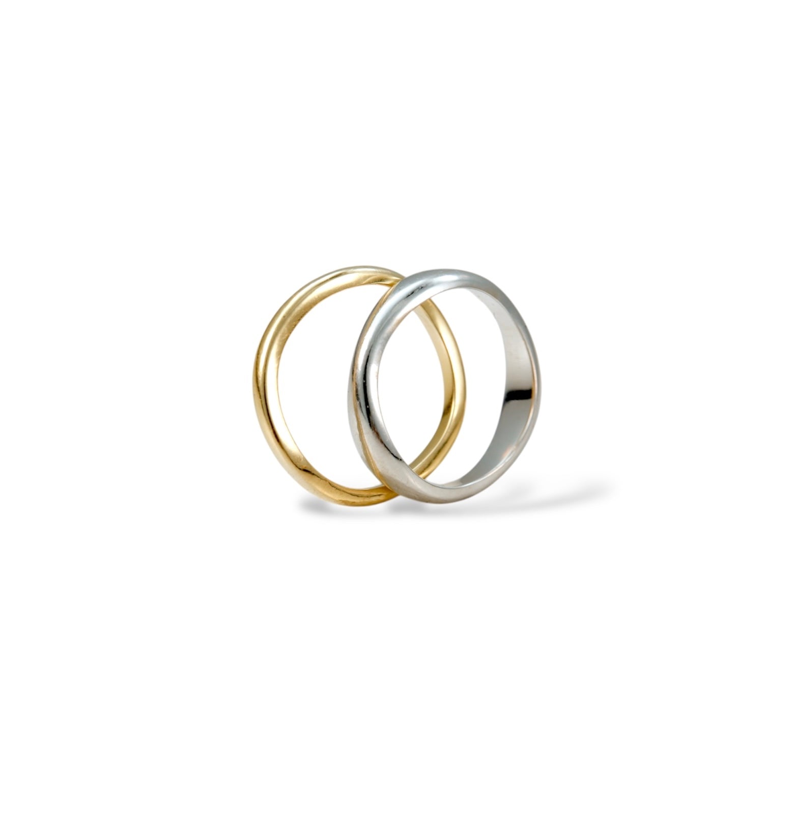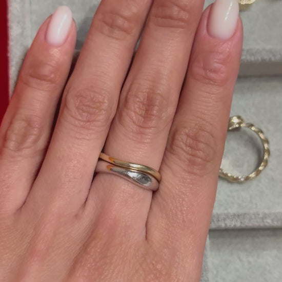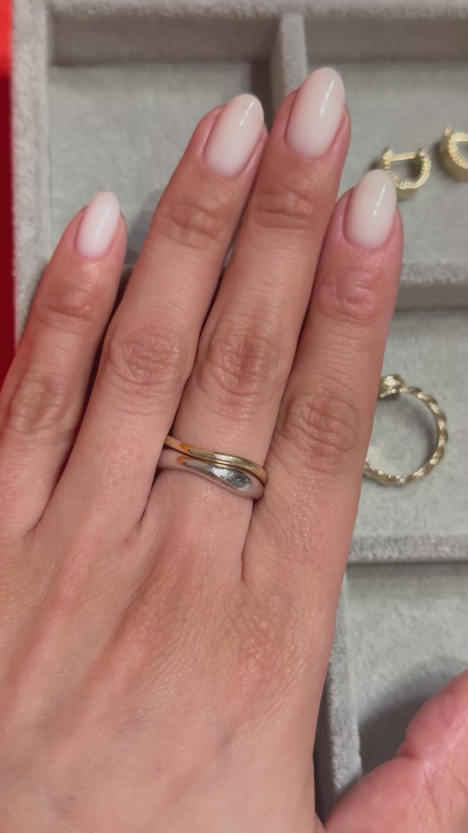 A match made in metal heaven – a sleek, thin gold band paired with a bold, curvy white gold S band. Whether you stack 'em up or let each shine solo, these two-tone beauties are here to turn heads. Carefully crafted and seriously stylish, they’re the ultimate duo to add that artsy, cool-girl edge to any outfit.